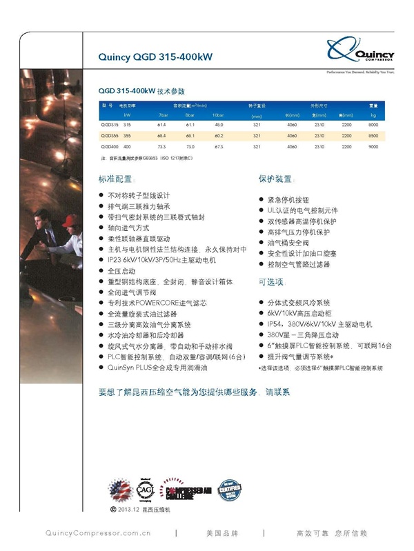 昆西QGD系列螺桿式空氣壓縮機(jī)315-400kW